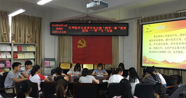 本网讯(学通社记者 洪天翼)6月16日下午,文学院中文系学生党支部“两学一做”学习交流会在该院会议室举行。围绕“两学一做”的具体内容、学习方法、思想内涵、指导意义等,与会的学生党员积极发言,展开讨论,交流学习“两学一做”、《习近平总书记系列重要讲话读本》的心得体会。